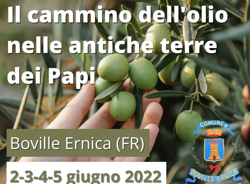 “Il cammino dell’olio nelle antiche terre dei Papi”, programmata per giugno la manifestazione che coniuga alla tradizione olearia l’arte, la cultura e i monumenti: quattro giorni intensi, da giovedì 2 a domenica 5 giugno 2022, con appuntamenti volti a valorizzare il territorio sotto tutti i suoi aspetti e far diventare il centro storico un vero e proprio laboratorio creativo, con eventi per tutti i gusti e tutte le età. Il progetto, che vede Boville Ernica Comune capofila ed è stato realizzato con la partecipazione di molti altri Comuni tra le province di Frosinone Latina, fra cui quello di Priverno, ha già visto realizzarsi altre fasi, compresa la creazione del marchio “L’olio dei Papi” e l’accredito presso lo Stato Pontificio. “Si tratta di un’altra grande opportunità che siamo riusciti a dare al nostro territorio – spiegano il sindaco Enzo Perciballi e la consigliera delegata al Turismo e al Centro storico, Martina Bocconi, che hanno curato il progetto – per mettere ancora una volta Boville Ernica, Città dell’Olio e socio del Club dei Borghi più belli d’Italia, al centro dell’attenzione a livello regionale e nazionale, sia sotto l’aspetto artistico sia sotto l’aspetto culturale ed economico. Ecco perché invitiamo tutti a partecipare a quelle che saranno quattro meravigliose giornate”.
