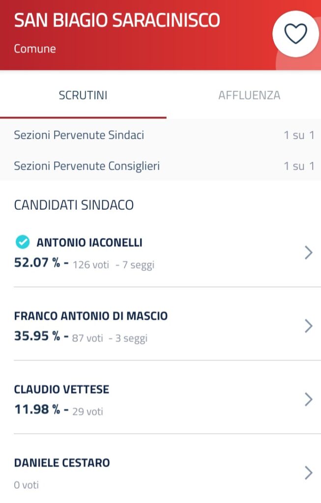 A San Biagio Saracinisco Antonio Iaconelli indosserà la fascia di primo cittadino. Ha vinto con il 52,07 % delle preferenze.