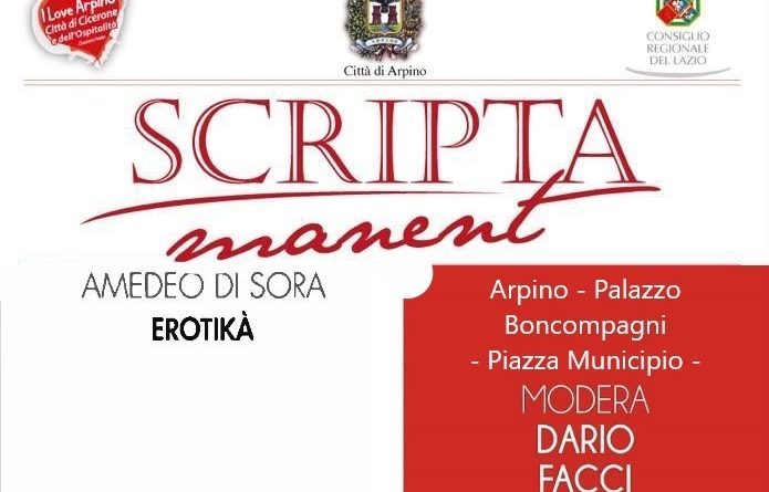 Giovedì prossimo, 19 agosto, alle 19, nella sala del Palazzo Boncompagni ad Arpino, si terrà la presentazione di Erotikà. Si